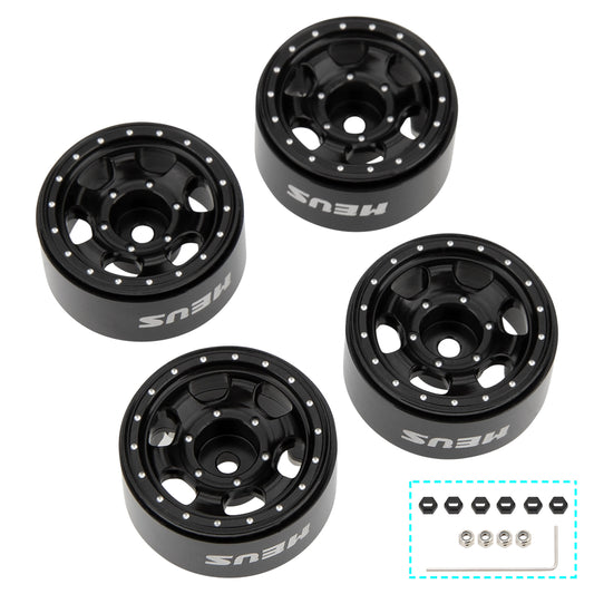 Meus Racing 1.0" Beadlock Aluminum Wheel Rims with Brass Wheel Rings for Axial 1/24 Gladiator Bronco C10 JLU Deadbolt TRX4M