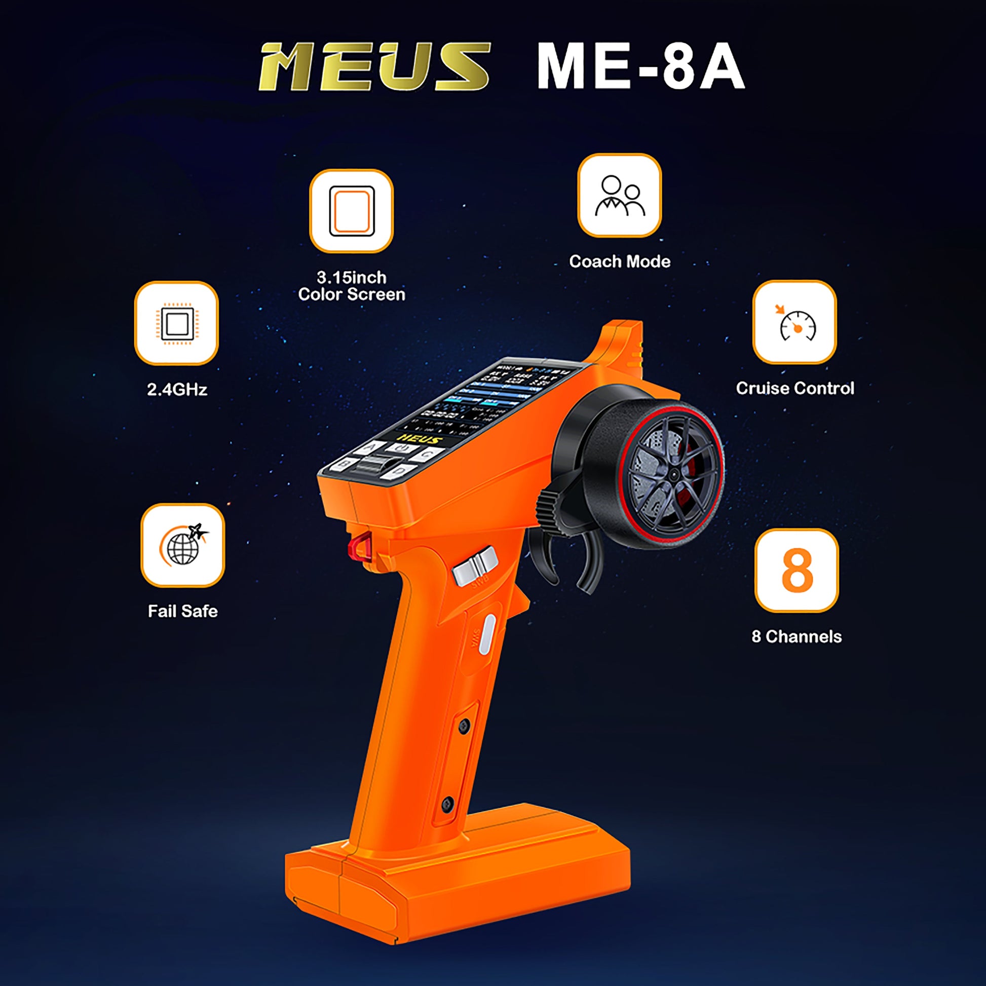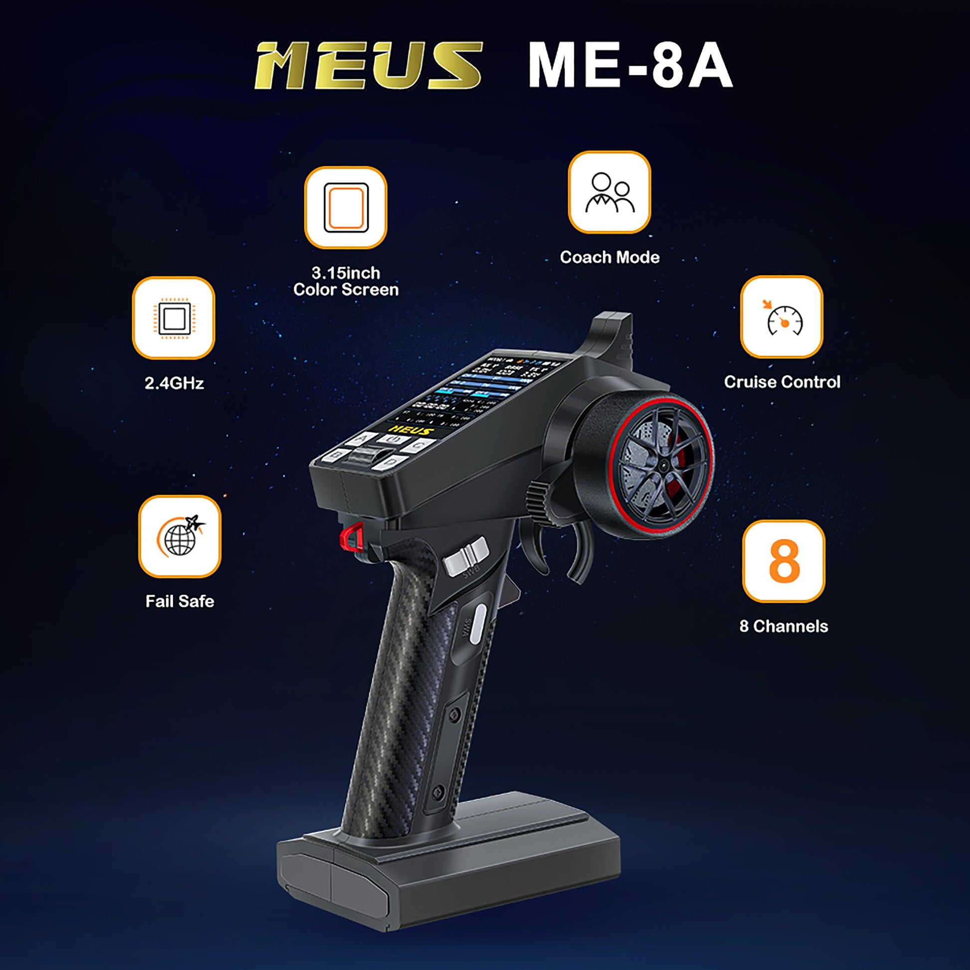 MEUS Racing ME-8A 8CH 2.4GHz RC Transmitter with M-08A Receiver for SCX24 TRX4M SCX10 TRX-4 RC Models