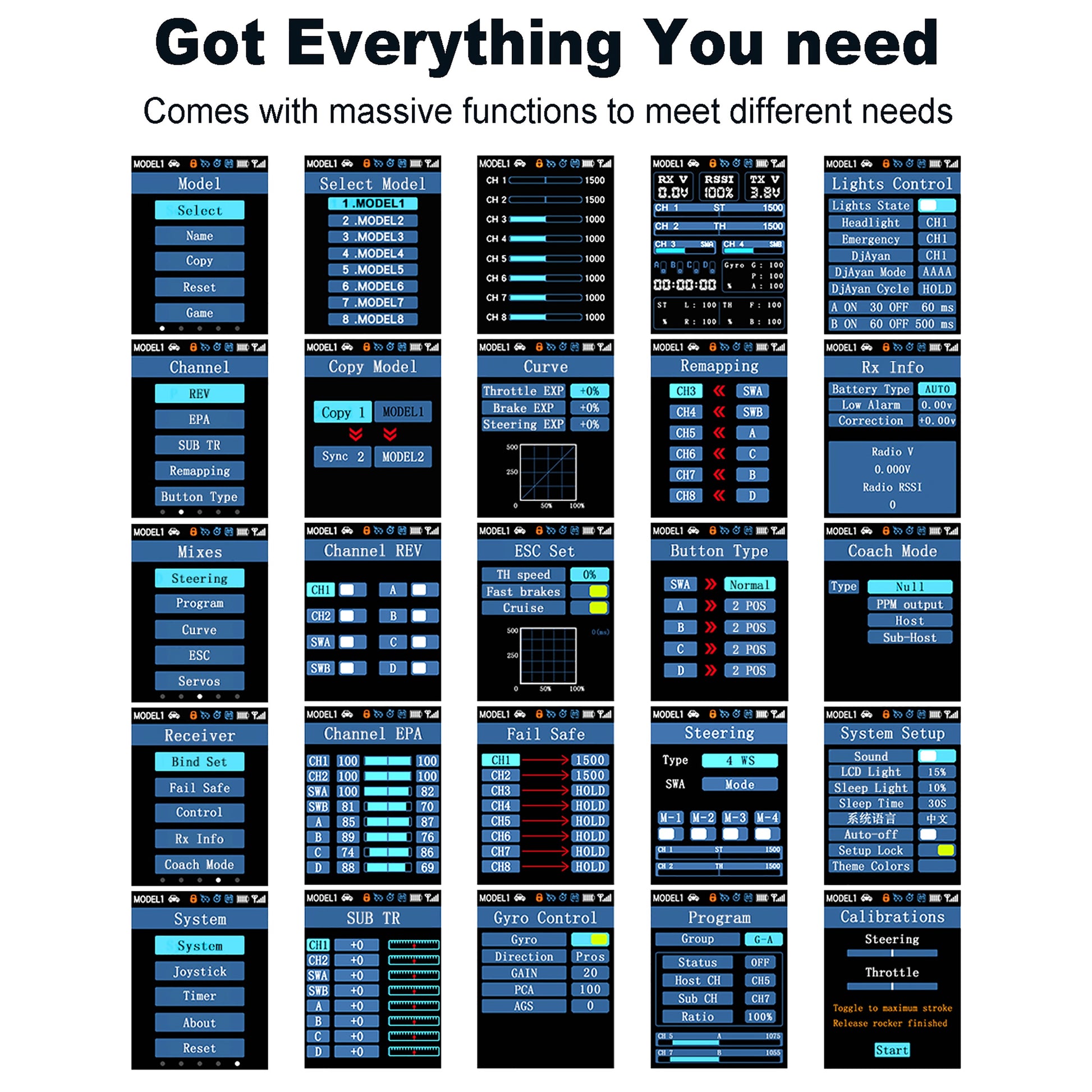 - 【Great Functionality】This RC transmitter is equipped with fail-safe, cruise control, and low-voltage warning features, and offers a wide range of functions to meet various customization needs, making it suitable not only for beginners but also ideal for professionals.
