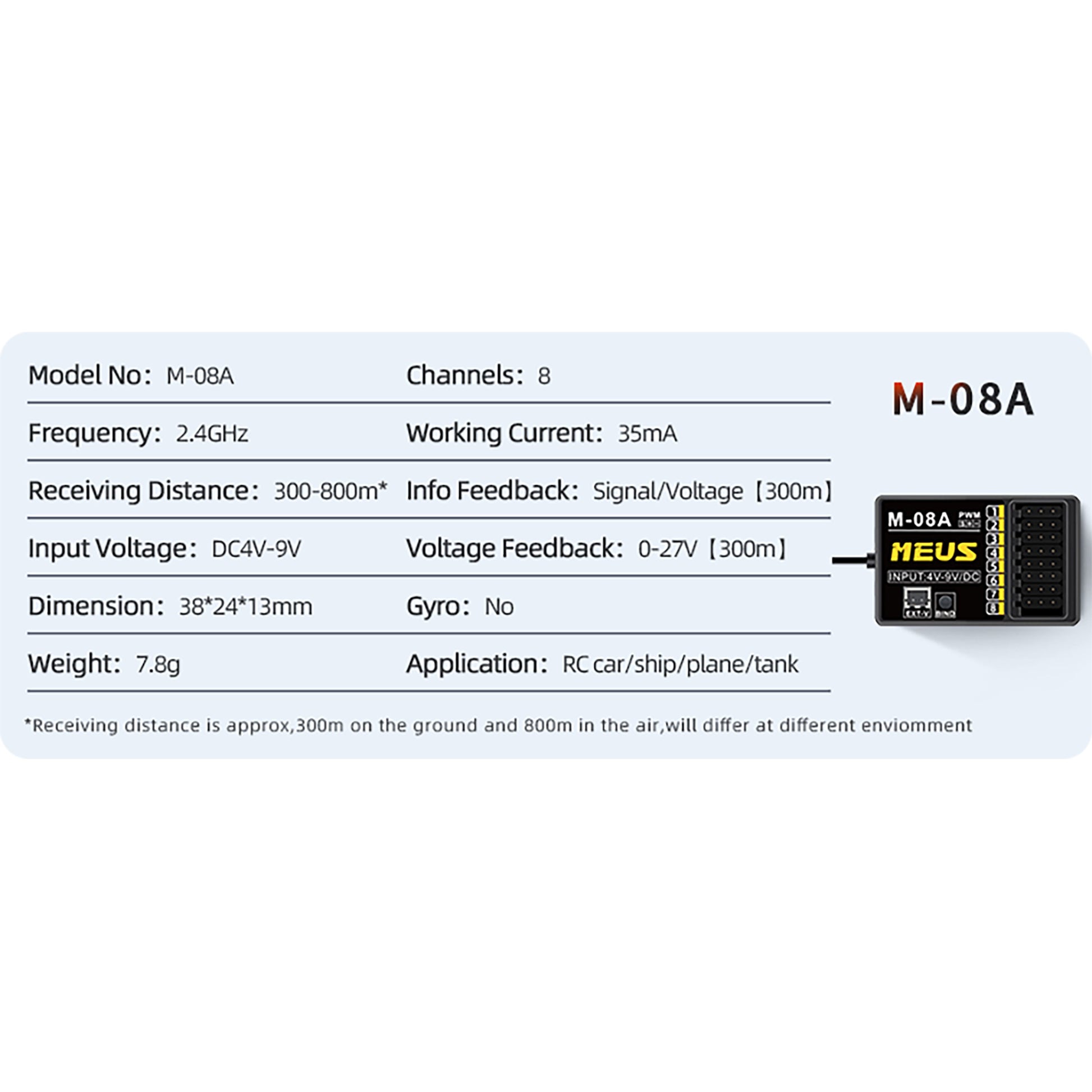 M-08A Receiver's Specifications(comes with transmitter):