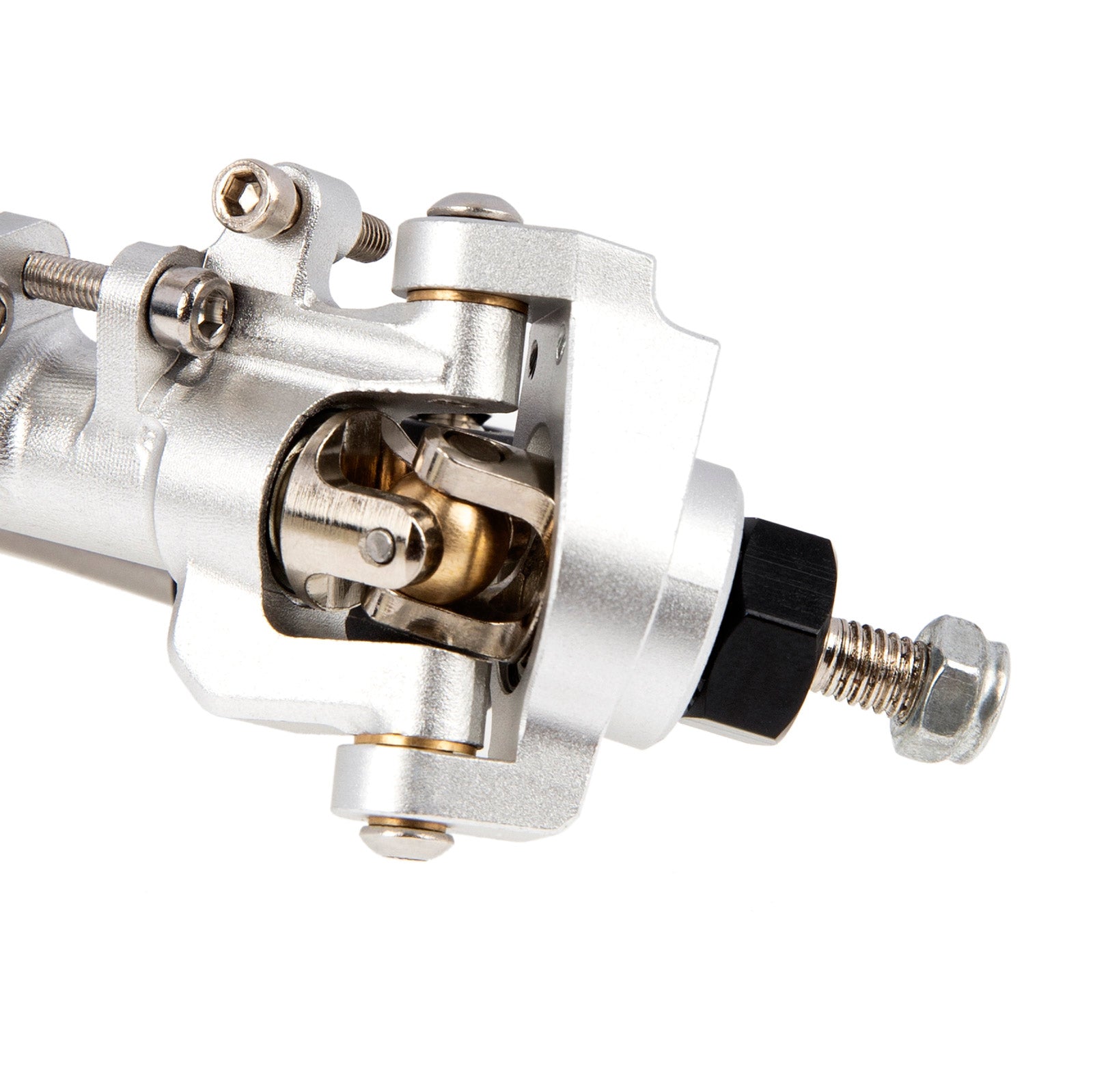 The transmission shaft adopts a universal joint structure and which is made of high-quality 45# steel, which rotates smoothly. The thickened wheel axle design uses M5 nuts to fix the tire, effectively preventing the wheel axle from deformation and bending.