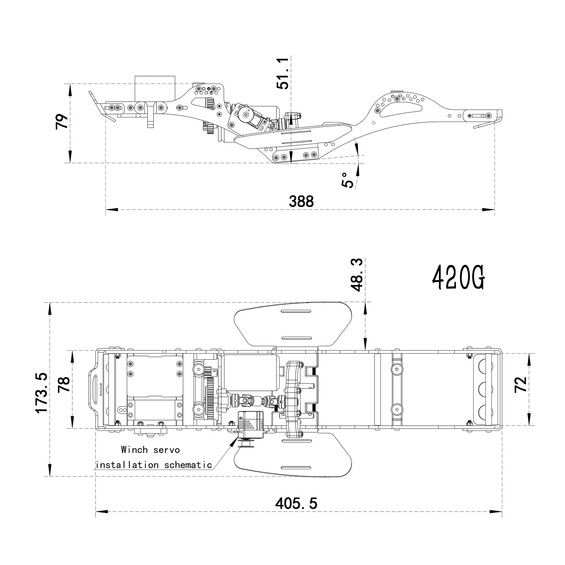 5. This LCG chassis supports AMS(Axle-Mounted Servo) and CMS(Chassis-Mounted Servo) axle servo program, Adjustable body mounting bracket, etc. More play waiting for you to discover.